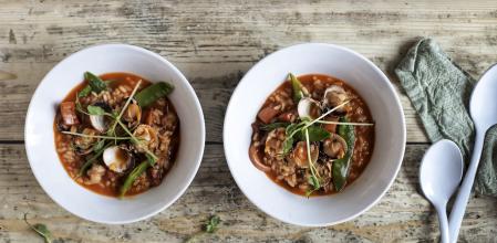 Ana Casanova reivindica a un pescado poco conocido que a pesar de ser feo, muy feo —y con un nombre que no le hace ningún favor, tampoco— es rico, muy rico. Aunque suele ser utilizado para sopas y fumets, en este arroz brilla su carne blanca y firme, que es tan intensa como exquisita.