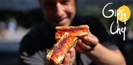 Gipsy Chef propone una receta que él mismo define como “pan y tomate llevados a otro nivel”. Un bocadillo jugoso, fresco y lleno de sabor, donde un tomate carnoso se convierte en el protagonista absoluto, acompañado por atún, ralladura de limón y un buen aceite de oliva virgen extra.
