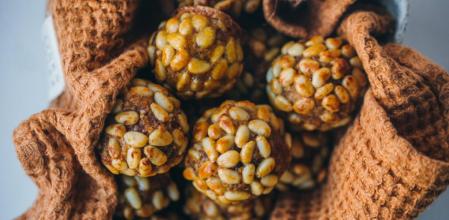 Esta versión de panellets se elabora con solo cuatro ingredientes: boniato, dátiles, almendras y piñones. Su color cálido y su sabor dulce evocan la magia del otoño, mientras que su combinación natural de ingredientes aporta energía y vitalidad en cada bocado.