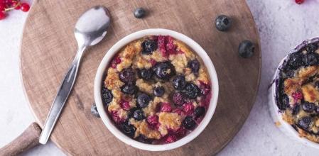 Este pudín combina el dulzor natural de los arándanos con el toque ácido de las grosellas, aportando una buena dosis de vitamina C y frescura en cada cucharada. Perfecto para disfrutar frío, como final ligero y saludable.