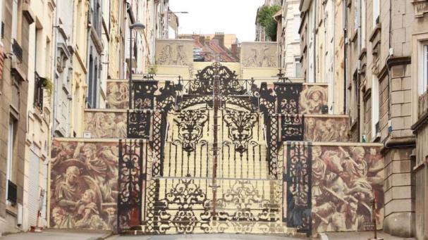 Una calle de la ciudad costera de Boulogne-sur-mer, una puerta como de castillo de cuento de hadas que no es lo que parece ser. Esta ilusión óptica, en la que la supuesta puerta no es más que un tramo de escaleras de la conocida calle de la ciudad, ha sido galardonada con el primer premio de arte urbano en el país galo. Como cada año, se organizó el concurso Golden Street Art, y esta maravillosa ‘puerta’ no pasó desapercibida entre las diez obras finalistas.