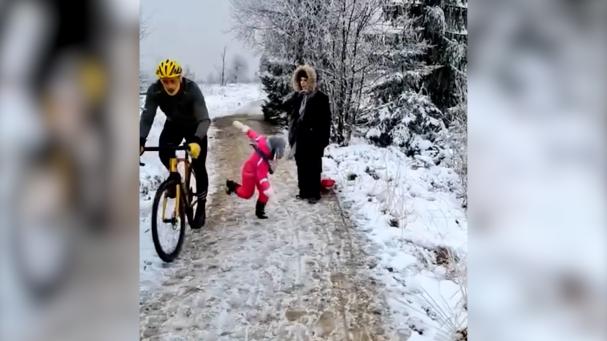 Video Las imágenes fueron recogidas por el padre de la pequeña, que grababa a su mujer y a la niña mientras daban un paseo por la zona de Baraque Michel (Bélgica) a finales del año pasado. Las dos iban caminando tranquilamente cuando apareció un ciclista que, en lugar de reducir la velocidad y pasar con cuidado, empujó a la niña con su rodilla izquierda, que provocó que la pequeña cayese al suelo. Según su padre, la niña tuvo que recibir tratamiento médico por temor a que hubiese sufrido una fractura.