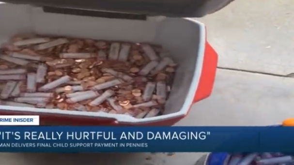 El hombre se presentó en casa de su ex mujer con un tráiler lleno de monedas después de que la hija que ambos tienen en común cumpliera 18 años y las arrolló en el césped del jardín como último pago de la pensión alimenticia de su hija.
