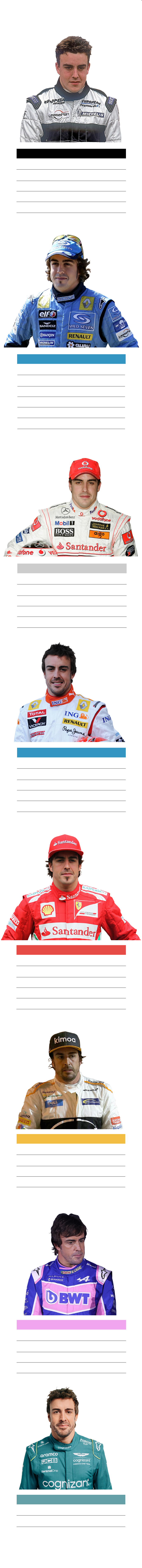 Cuando volvió en el 2021, con 39 años, tras dos cursos sin F1, Alonso se convirtió en el séptimo campeón del mundo que regresaba al gran circo después de haberlo dejado. Solo cuatro volvieron a ganar carreras: Kimi Räikkönen (3 en 9 temporadas), Nigel Mansell (1 en dos cursos), Alain Prost (7 en una temporada) y Niki Lauda (8 en cuatro).