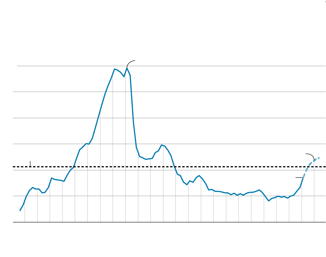 El porcentaje de la renta dedicado a la hipoteca quedará sin embargo lejos de los máximos alcanzados justo antes de la Gran Recesión de 2008, cuando llegó a equivaler al 54%. En ese momento, el pinchazo inmobiliario provocó un desplome en la firma de hipotecas y también una mayor prudencia de los consumidores al asumir gastos.