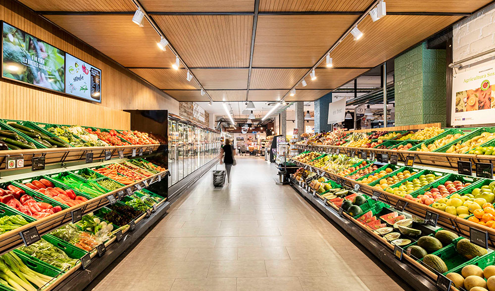 • Reducimos el uso de plásticos, con la eliminación de las bolsas y la sustitución de las bandejas de poliestireno por alternativas compostables. También hemos implementado medidas para reducir el consumo energético y las emisiones de carbono. La instalación de placas fotovoltaicas en algunos de nuestros establecimientos y la renovación de nuestra flota de reparto con vehículos eléctricos y de gas natural son algunos de los ejemplos. En esta línea, hemos apostado por la logística urbana sostenible con la introducción del primer camión pesado 100% eléctrico en Catalunya.