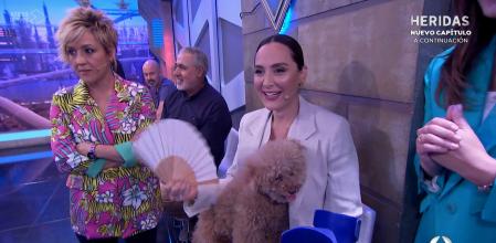Si bien todo el mundo estaba expectante por la llegada de Falcó al programa de Antena 3 donde trabaja para que hablase de su último viaje, esta entró con muletas. "Hoy Tamara ha venido, se ha caído por unas escaleras y luego lo comentamos. Tiene el pie un poco...'', decía Pablo Motos, presentador de El Hormiguero.
