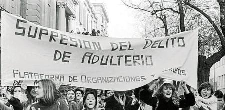 'Comete adulterio la mujer casada que yace con varón que no sea su marido y el que yace con ella sabiendo que está casada, aunque después se declare nulo el matrimonio”, dictaba el artículo 449 del Código Penal, introducido el 11 de mayo de 1942 por el Consejo de Ministros presidido por Franco. La dictadura poco después de ganar la Guerra Civil, reinstauraba este delito, que había sido derogado por la República. Esto es, demostrado el 'delito', la mujer era culpable siempre, mientras que el hombre podía salir indemne si se alegaba con éxito que desconocía que su amante estaba casada. Así se restablecía el delito de adulterio para la mujer y el de amancebamiento para el hombre ('El marido que tuviere manceba dentro de la casa conyugal, o notoriamente fuera de ella'). También para este caso la acusación debía formularla su esposa -'la mujer agraviada'-, a quien también se le reconocía el derecho de indultar' al marido que hubiera sido condenado por amancebamiento. Se penaba con entre seis meses y seis años de prisión.