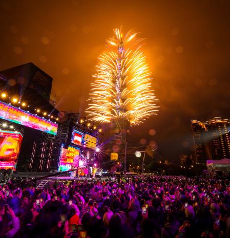 Fuegos artificiales y espectáculos de luces iluminan el cielo nocturno desde el rascacielos Taipei 101 durante las celebraciones de Año Nuevo en Taipei, Taiwán.RITCHIE B. TONGO / EFE
