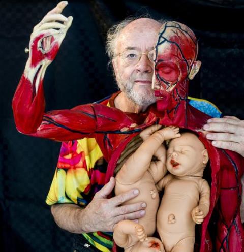 Es la primera vez que expone su obra en Barcelona (Artefakte). El creador del arte crudo, una disciplina analítica, me confiesa que ni él mismo entiende sus creaciones, pero que le ayudan a estar más sano. Veo grandes collages donde exonera sus angustias debidas a los tiempos que nos ha tocado vivir: atentados, inseguridad...Y defiende que la creación espontánea e inconsciente de la mano de la psicoterapia sería una buena manera de librarnos de los miedos y traumas que está viviendo esta sociedad. En 1984 creó el museo Art Cru en Burdeos, que contiene más de mil trabajos de urgencia de un expresionismo corrosivo de personas que han descubierto la experiencia creativa para trabajar las crisis existenciales.