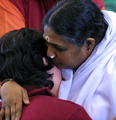 Lleva diez horas abrazando con un amor sobrecogedor a cada una de las miles de personas que esperan turno; es su manera de predicar el amor, con el ejemplo. Así vive, recorriendo el mundo y abrazando. Sus discursos –como presidenta del Parlamento de Religiones del Mundo y el del aniversario de la ONU– están cargados de sentido, al igual que sus libros (ed. Ammachi). Donativos internacionales le han permitido crear una red social (orfanatos, escuelas, hospitales) de ayuda humanitaria en India. Su credo es la unidad fundamental de todas las religiones; su lucha, la recuperación de las cualidades del corazón en la vida diaria. Para ella no basta con meditar, únicamente dando amor nos reconciliaremos con nosotros mismos porque somos uno, y dar es darse.