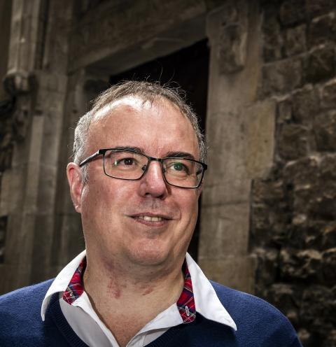 Un programa esoterista de Jiménez del Oso le descubrió a los templarios: hoy es un historiador que sostiene que el medioevo no fue una edad oscura, sino “rica en arte, obras, historias, pasiones, intelectuales como Llull o Arnau de Vilanova, ideas... ¡La actual Catalunya y Europa nacen ahí!”. Me asegura que un templario catalán “se limpiaba las legañas y se lavaba”, y publica Rere les passes dels templers. La veritable història de l’orde del Temple en terres catalanes (Rosa dels Vents), y le fotografiamos ante la antigua capilla del Palau Reial Menor (hoy iglesia de Nostra Senyora de la Victòria) donde estuvo la casa del Temple en Barcelona hasta su fin, en los albores del siglo XIV.