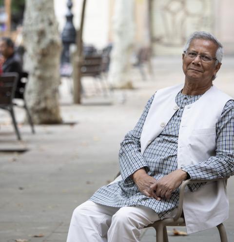 Creó los microcréditos y fundó el Banco Grameen para difundirlos a gran escala. Así sacó de la pobreza a millones de familias en todo el mundo, por lo que le concedieron el premio Nobel. Las necesidades de los pobres le llevaron a idear las empresas sociales, concepto que se ha hecho viral. Es uno de los cerebros de nuestro tiempo, un gran visionario. Su propuesta, explicada en Un mundo de tres ceros (Paidós), podría sonar utópica si no naciera de su propia experiencia que le ha llevado a crear un nuevo motor económico abandonando el supuesto de que nos mueve el egoísmo y apostando por el altruismo. Dio una charla en CaixaForum, invitado por Social Business City Barcelona, Smart City Expo y Tandem Social.