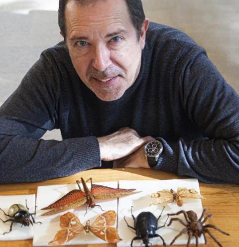 Sistach ha sido durante decenios el director de compras de libros de El Corte Inglés, pero su pasión secreta siempre fueron los insectos. Durante cuarenta años se ha dedicado al estudio minucioso de la entomología, hasta llegar a ser colaborador del Museo de Zoología de Barcelona, y también miembro de la Institución Catalana de Historia Natural. Nos trae de su casa, para la foto, algunos ejemplares de su colección particular de insectos, cazados por el mismo. Pero desde hace años prefiere estudiar y escribir sobre insectos a cazarlos: lleva publicada media docena de libros de divulgación, el último un homenaje a mujeres entomólogas: Pasión por los insectos. Ilustradoras, aventureras y entomólogas (Turner Noema).