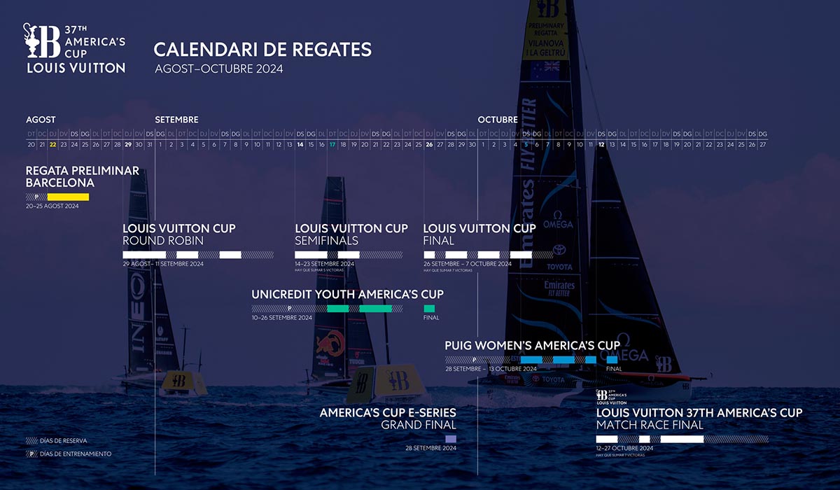 El 2023 es van disputar dues regates preliminars: la primera, del 14 al 17 de setembre, va tenir lloc a Vilanova i la Geltrú amb victòria del NYYC American Magic, i la segona a Jeddah, Aràbia Saudita, del 29 de novembre al 3 de desembre, amb triomf de l’Emirates Team New Zealand. La tercera comença aquest dijous, dia 22, en aigües del litoral barceloní.