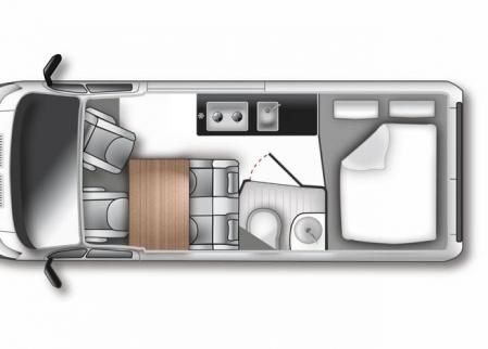 En el Big Nugget se aprovecha por completo el enorme espacio extra de esta versión, con cuatro áreas funcionales perfectamente definidas. En la zona delantera, los asientos del conductor y el acompañante ofrecen las mismas características que el resto de la gama, salvo por la característica que en este caso las dos butacas pueden rotarse para ofrecer una espaciosa y cómoda zona de estar y comedor.
