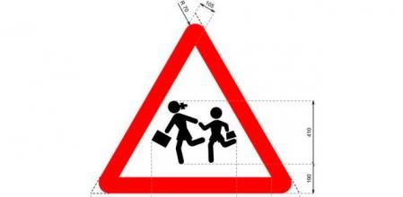 La P-21a indica peligro por la proximidad de un lugar frecuentado por niños, como una escuela, una zona de juegos, etc. El concepto no es nuevo, pero sí la imagen, que anteriormente mostraba al niño por delante de la niña. Se invierten los papeles.