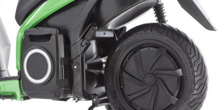 Ofrece tres modos de conducción que combinan diferentes velocidades máximas y autonomías, que puede llegar a ser de 127 km y una velocidad máxima de 100 km/h. Además dispone de marcha atrás, un amplio maletero bajo el asiento en el que caben dos cascos, un sistema regenerativo de energía en las frenadas y retenciones y una total conectividad smartphone. Su batería es extraíble y transportable con un práctico “trolley” y su precio 6.250 euros.