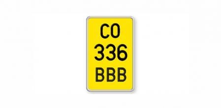 En este caso, esta placa es exclusiva para ciclomotores. Es decir, para los vehículos de dos ruedas de hasta 50 cc. Esta matrícula varía tanto en forma como en distribución, además de tener diferentes dimensiones -100x168 mm- en comparación con las de un turismo. La placa puede ser vertical, tiene fondo amarillo y los números y dígitos en negro.