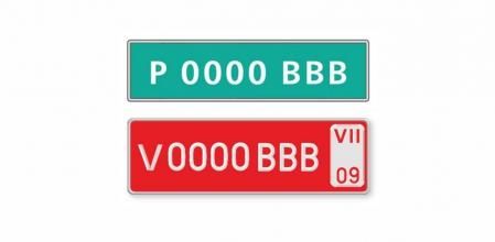 Estas placas se ofrecen de forma temporal mientras no se dispone de una matrícula definitiva. Existen dos modelos diferentes, ya sea para particulares o empresas. En el caso de los primeros, se trata de una placa de color verde con los caracteres en blanco. Está compuesta por una letra P, una combinación de 4 números y tres letras y tiene tres plazos de validez: 10 días, 60 días y durante el tiempo de traslado del vehículo a la UE o al extranjero, donde se volverá a matricular.