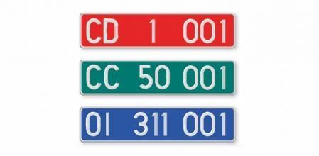 Existen varios tipos de matrículas diplomáticas, que varían en color de fondo y código. La roja, que identifica vehículos del Cuerpo Diplomático, está formada por tres grupos de caracteres de color blanco que inician por el código CD, dos cifras en el centro que identifican la Misión Diplomática y dos o tres números que indican vehículos en propiedad de la Misión Diplomática o a sus miembros. La de fondo verde sigue una estructura idéntica -solo le diferencia el código CC al inicio- y representa a los vehículos del Cuerpo Consular, mientras que la de fondo amarillo y letras negras -usa el código TA- identifica a los vehículos de Técnicos Administrativos. Finalmente, la azul, con código OI, se emplea en vehículos de Organismos Internacionales.