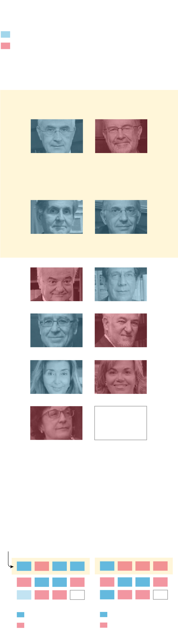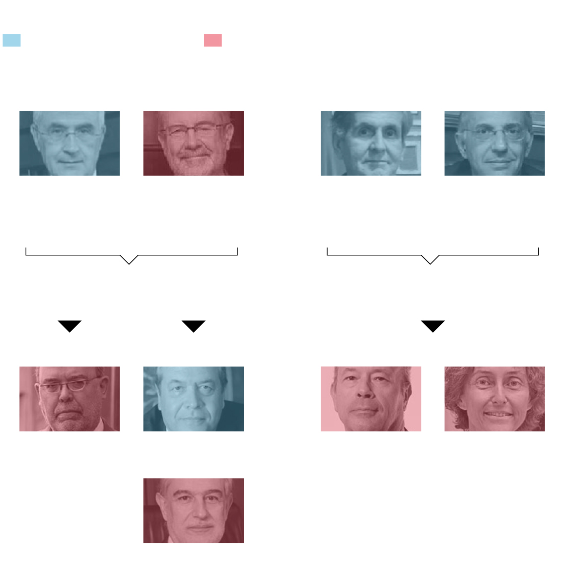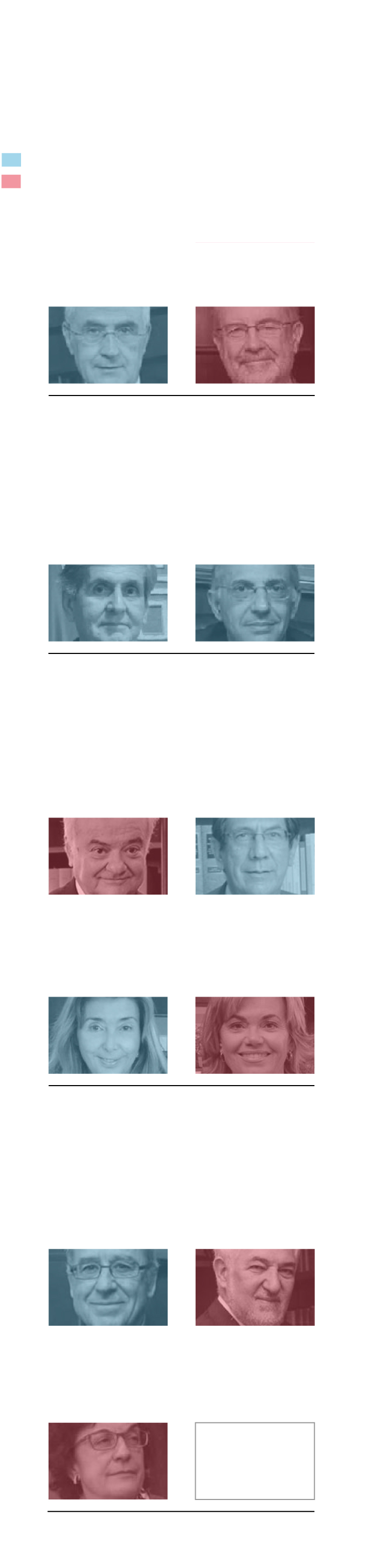 Seis magistrados son conservadores y cinco son progresistas. Con la renovación, las mayorías darían un vuelco: 4 conservadores y 7 progresistas —a la espera de la elección del sustituto de la vacante de Montoya.