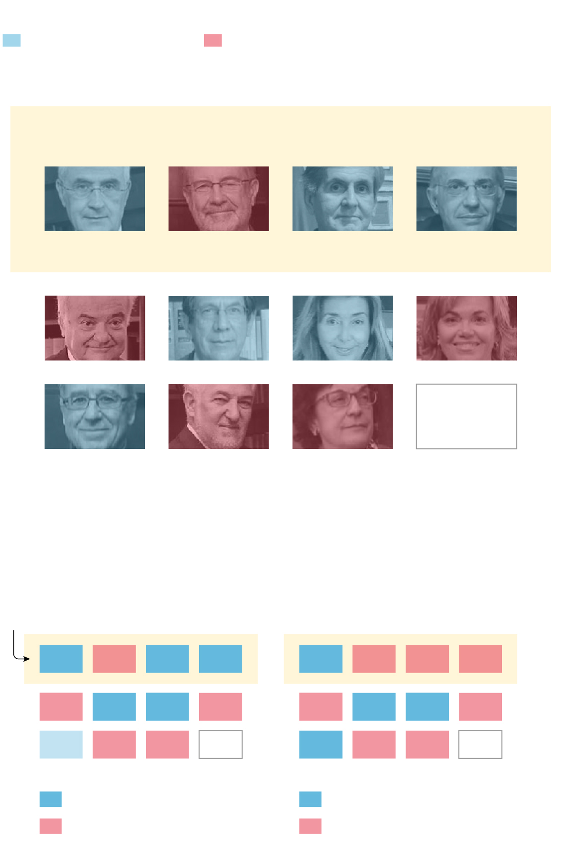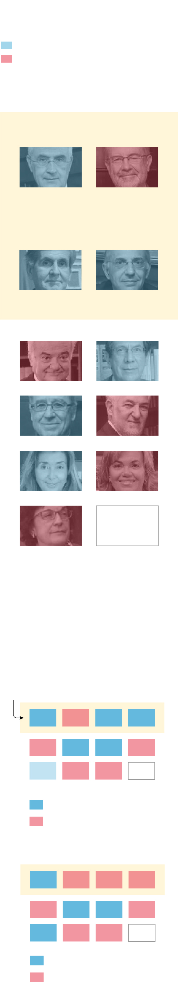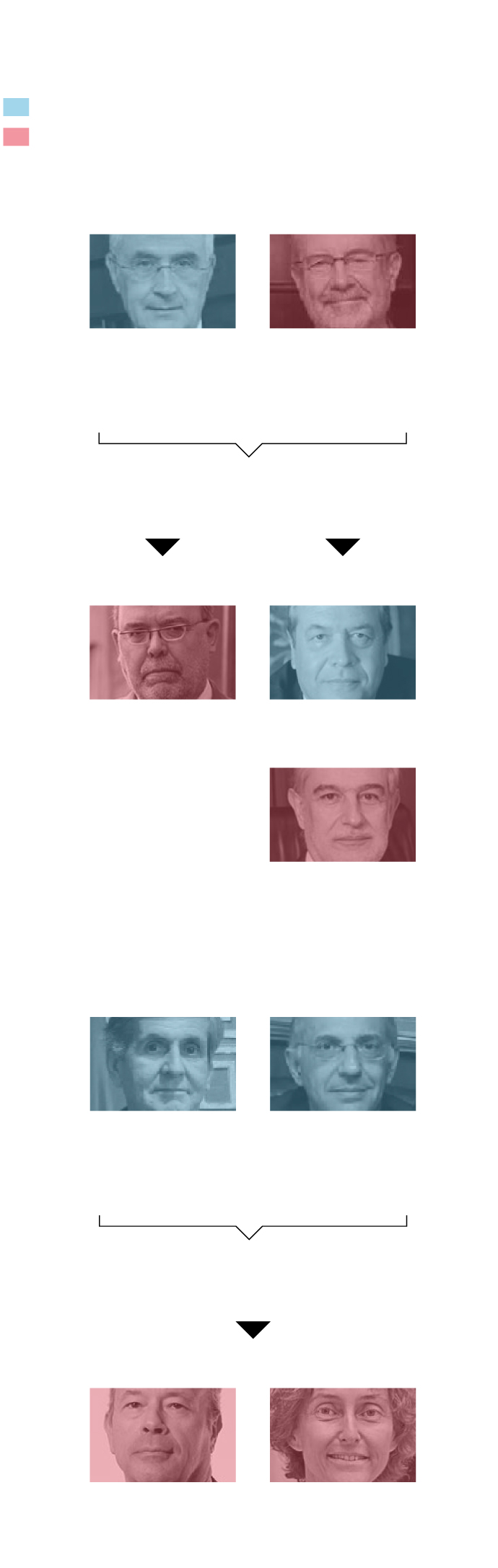 Seis magistrados son conservadores y cinco son progresistas. Con la renovación, las mayorías darían un vuelco: 4 conservadores y 7 progresistas —a la espera de la elección del sustituto de la vacante de Montoya.