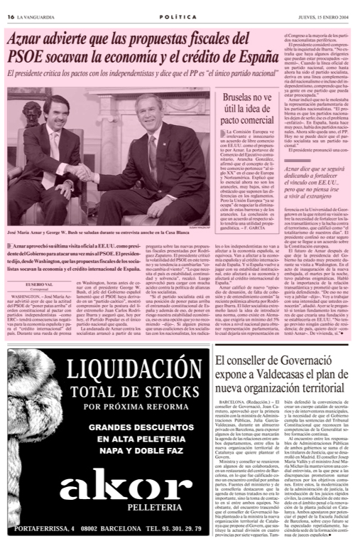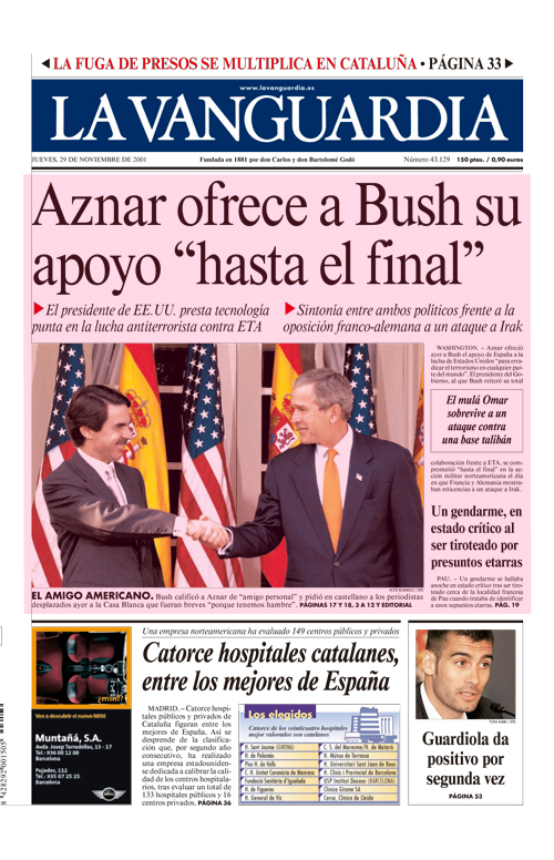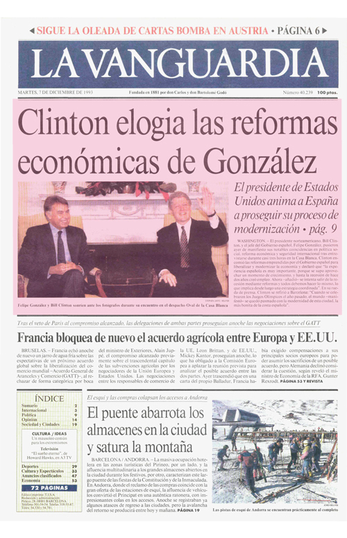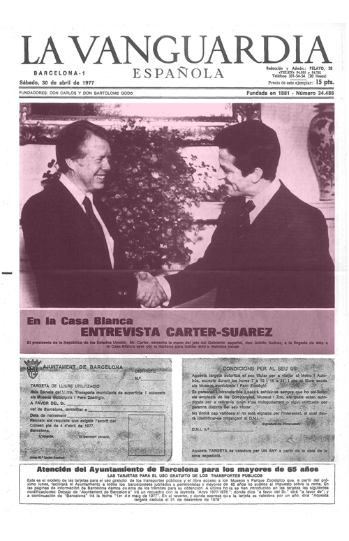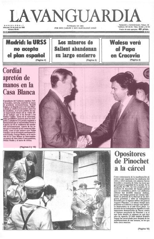 Encuentros entre los presidentes de España y EE.UU. en la Casa Blanca recogidos el día posterior en la edición impresa de La Vanguardia