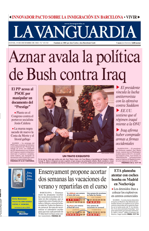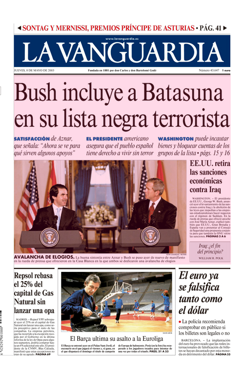Estados Unidos recompensó el apoyo firme de Aznar a la invasión de Irak incorporando a Batasuna en su lista de grupos terroristas.