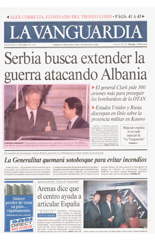 Visita relámpago de Aznar en su ofensiva diplomática para hacer valer la presencia de España en el frente OTAN en los Balcanes.
