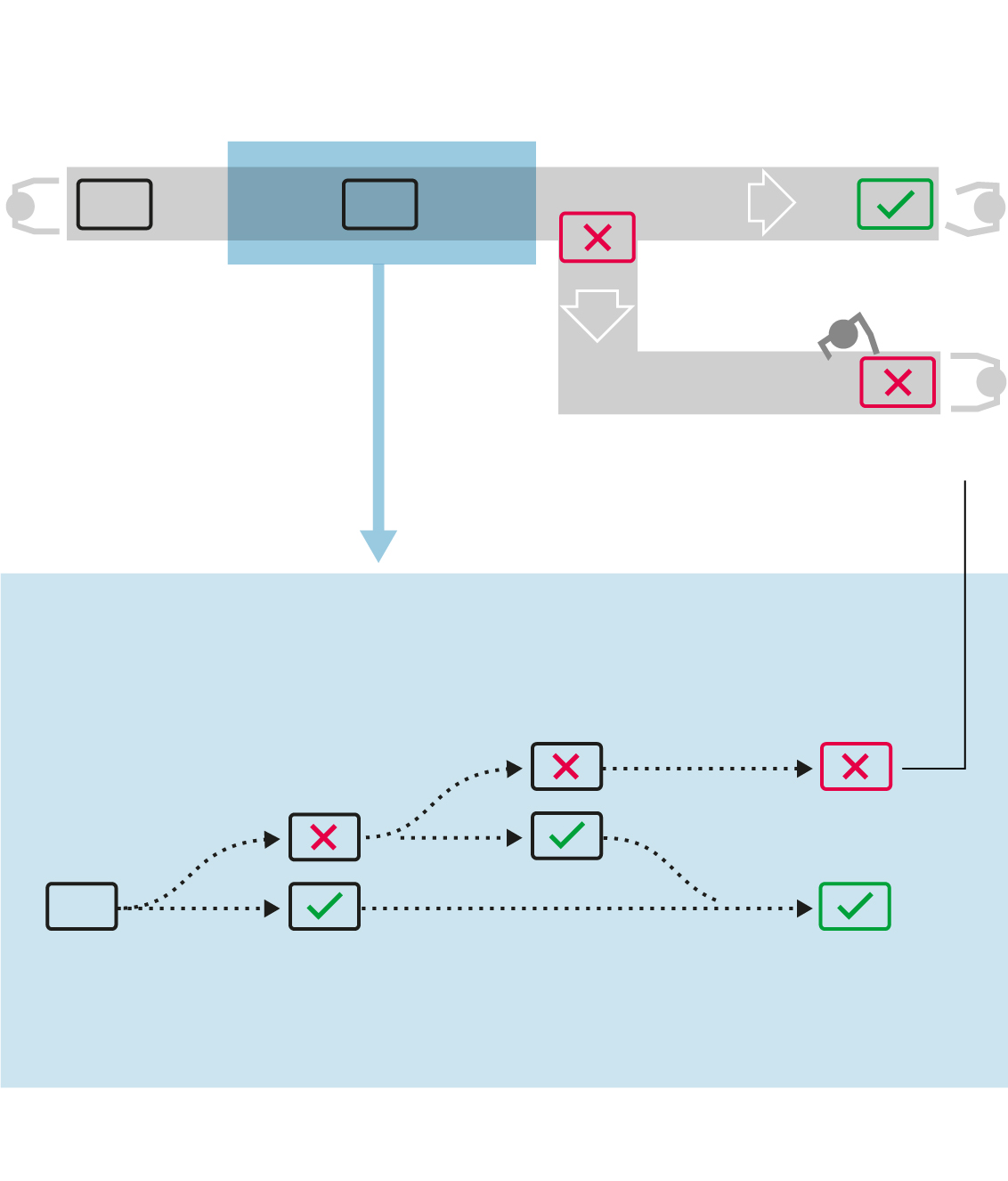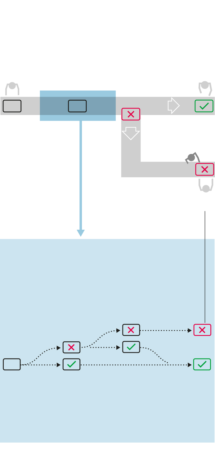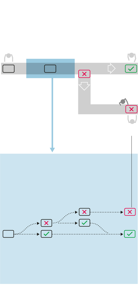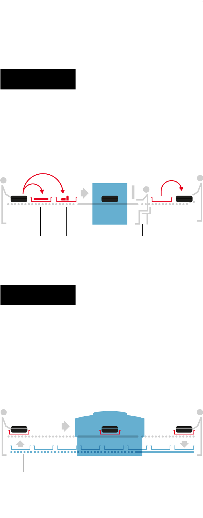 El sistema ARTS es una cinta de rodillos que conduce las bandejas hasta el escáner con devolución automática al punto de inicio.